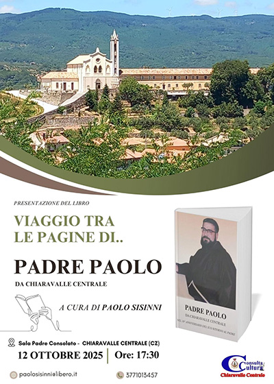 Il libro “Padre Paolo da Chiaravalle Centrale” a cura del nipote Paolo Sisinni, sarà presentato con la collaborazione della Consulta della Cultura, domenica 12 ottobre, alle ore 17.30, presso il Convento dei Cappuccini di Chiaravalle Centrale (Cz), nella sala Padre Consolato.